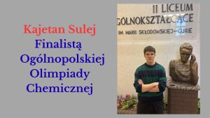Kajetan Sulej zdobył tytuł finalisty 72. Olimpiady Chemicznej. Jest to ogromny sukces, gdyż olimpiada chemiczna wymaga od ucznia nie tylko...