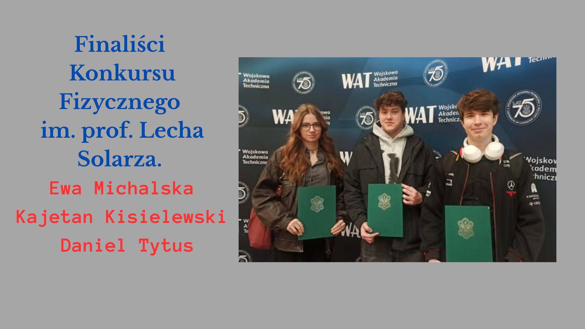 Kajetan Sulej i Filip Lach uzyskali tytuł laureata XXX Ogólnopolskiego Konkursu Chemicznego "Wygraj Indeks" organizowanego przez Politechnikę Gdańską. Opiekunem naukowym jest Emilia Wróbel.